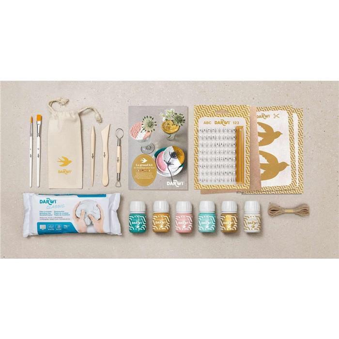 Descoperă kitul complet de modelaj DARWI CLASSIC, perfect atât pentru începători, cât și pentru artiștii experimentați care doresc să exploreze diferite tehnici de modelaj. Pasta Darwi este ușor de modelat, se usucă la aer fără să se micșoreze sau să se crape și poate fi șlefuită, vopsită sau lăcuită după uscare — un material ideal pentru proiecte creative de orice nivel.