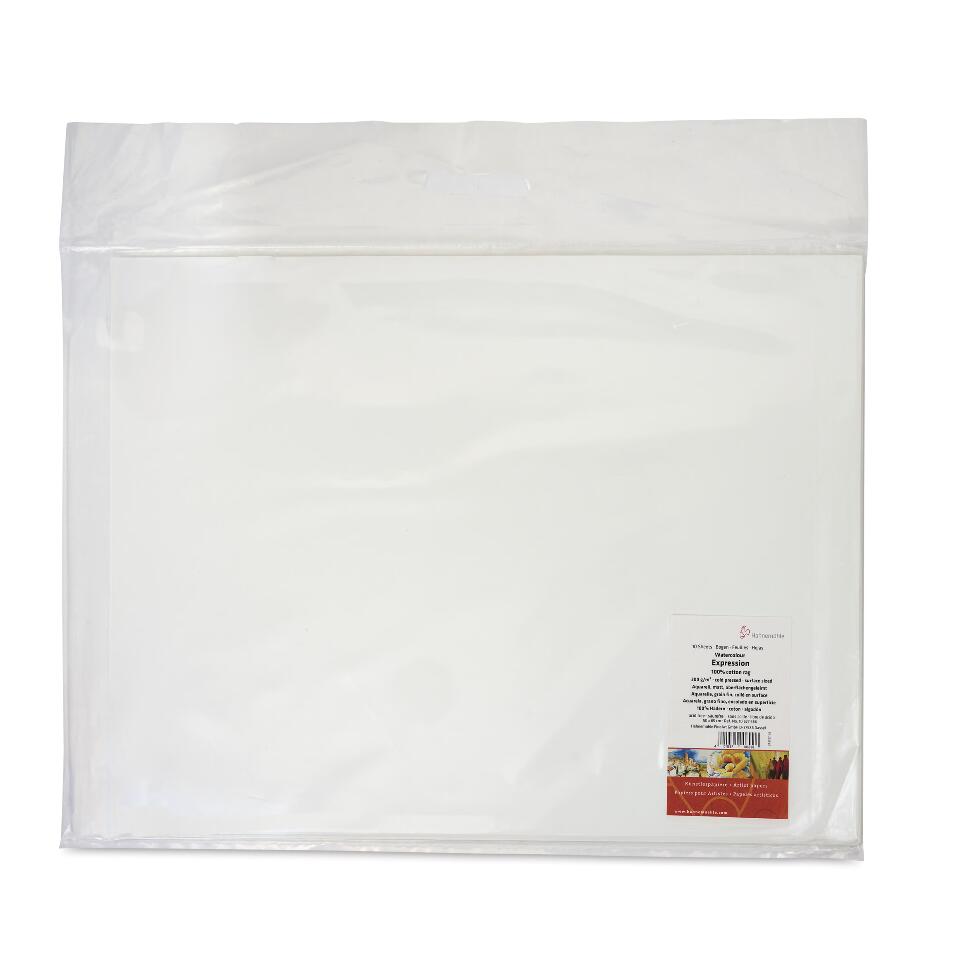 Hahnemühle Expression Watercolor este o hârtie de înaltă calitate, 100% bumbac, cu dimensiunea 20" x 26" și greutatea de 300 gsm (140 lbs). Hârtia natur-albă, acid-free și rezistentă la lumină, este tratată cu surface sizing, ceea ce o face rezistentă la radieră și permite utilizarea bandelor adezive sau a fluidului de mascaj fără a lăsa reziduuri.
