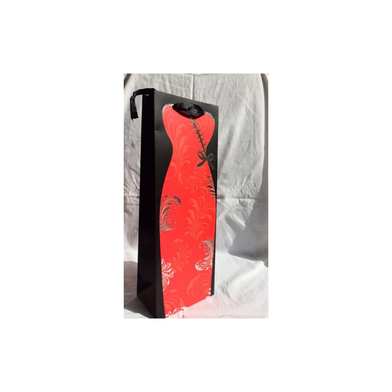 488025 - Plasa cadou pt vin - rochita rosie, plasa hartie, 12.7*36*8.2cm